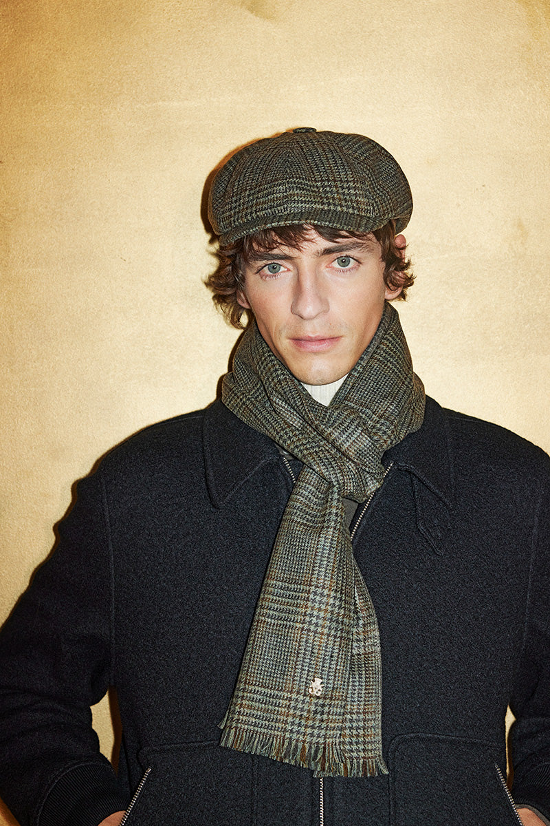 Une pièce phare de la collection : notre ensemble inspiré Peaky Blinders. Une casquette Glencheck audacieuse et son écharpe assortie—clin d’œil à une masculinité décontractée et au charme irrésistible d’outre-Manche.